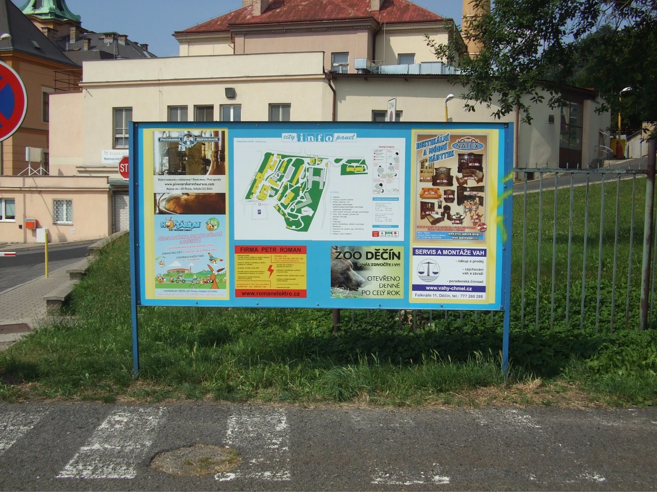 Infopanel je umístěn na parkovišti u hlavního vchodu do areálu nemocnice Děčín v ulici U Nemocnice.