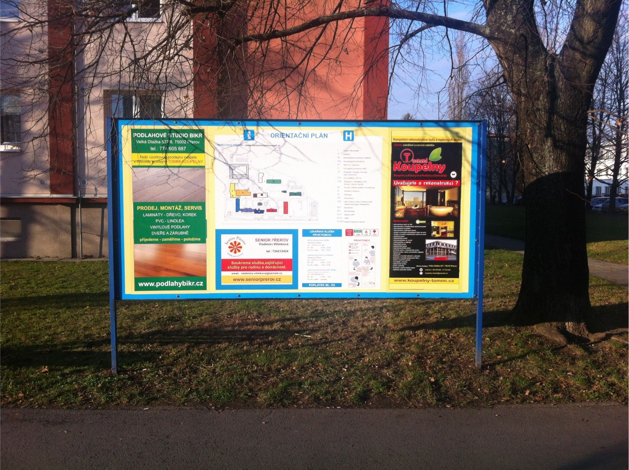 Infopanel je umístěn v prostoru zastávky u nemocnice Přerov v ulici Dvořákova