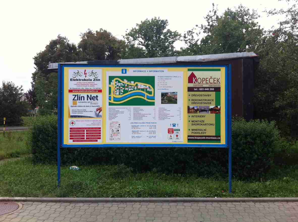 Infopanel je umístěn na zastávce u hlavního vchodu do nemocnice T. Bati Zlín v ulici Zálešná XII